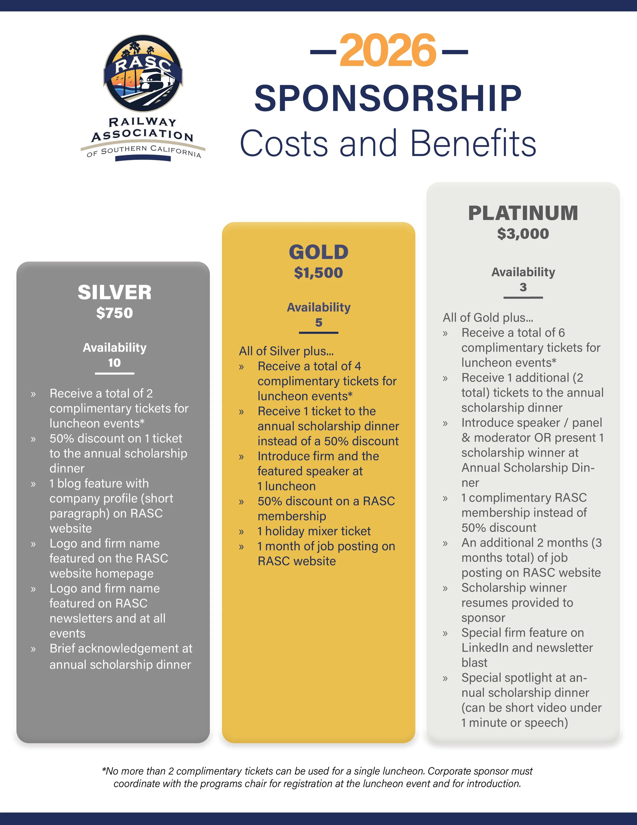 The Railway Association offers an annual sponsorship which supports our scholarship program, annual events, and college outreach program.